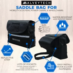 All in all, the AlveyTech cane holder & saddle bag combination for mobility scooters, power chairs, and wheelchairs are a pair of superb mobility accessories that blend quality construction with utilitarian convenience.