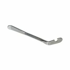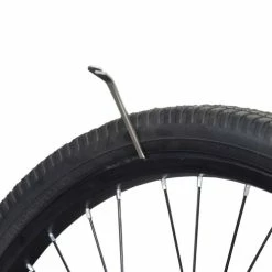 We recommend using all three tire levers at a time – two to hold the rubber bead away from the rim and one to circle around the rim to remove the tire. The spoon end is curved to better get inserted between the rim and the bead. The other end has a hook that fits around a spoke to keep the tire bead and the rim separated.