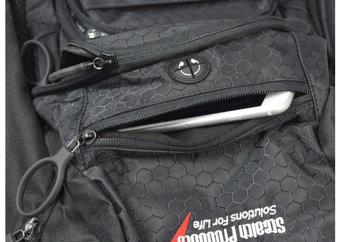 There are four zippered pockets to use, and a copious amount of space. Of special note are the zipper handles. No more fumbling around to find a little metal tag; these zippers use large, easy to grasp plastic loops.