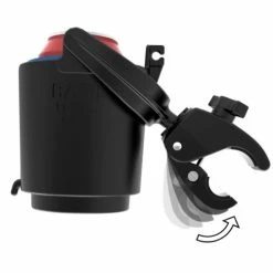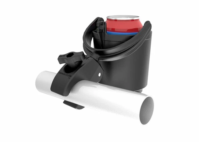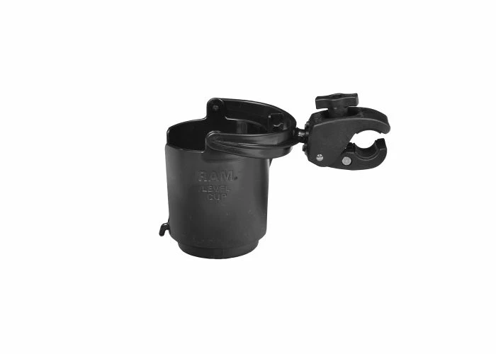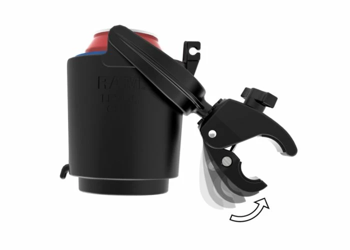 The drink cup holder is on a gimbal, two pivot points, allowing for your drink to always stay upright and never spill. The mount rotates 360 degrees. The mounting clamp fits tubes and rails from 5/8″ up to 1-1/2″. The cup holder is made of rustproof high strength composite & stainless steel.