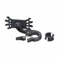 This high-quality black holder really grabs your mobile phone with its rubber “claws” and keeps it tight and secure. And best of all; it will quickly mount on just about any and every handlebar, or armrest bracket used on bikes, scooters, wheelchairs, and power chairs today. With the holder’s universal elastic rubber mounting setup, it is perfect for all of today’s top brands and models