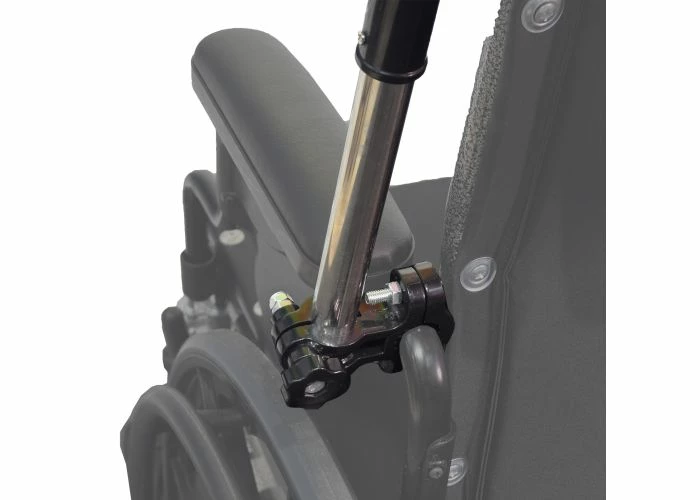 Note: The clamp is designed to be mounted on round tubing such as scooter tillers or round armrest tubes. However, it will also clamp to most square armrest tubing as found on many power chairs and wheelchair models. If you find the grip to be loose when used on square tubing, try using some electrical tape or rubber tubing for a tighter grip.